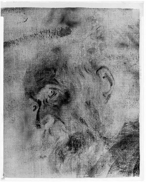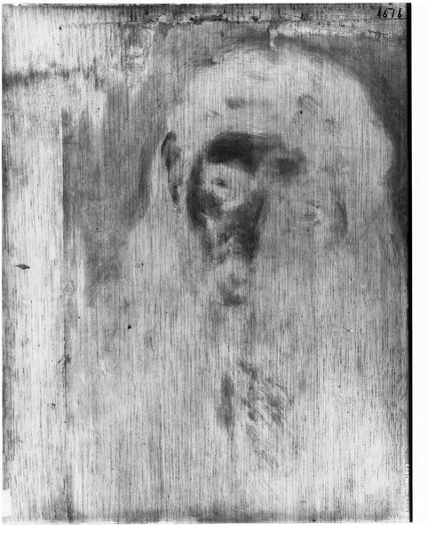 Curator: This is an X-radiograph of "Madonna and Child," after Domenico Beccafumi, currently residing in the Harvard Art Museums. It's a fascinating piece that invites a different perspective on a classic theme. Editor: Ghostly. It looks like a shroud more than a painting, the textures emerging from the darkness. What kind of information can we glean from this? Curator: Radiography reveals so much about artistic process and materials. This one allows us to consider the painting’s evolution, the materials used, and perhaps even the artist’s techniques. Editor: I find myself focusing on the underpainting, the structure beneath the surface. It reminds us that artworks are constructed, they are not just images, but layered objects made with labor. Curator: And what about the religious implications? Seeing it almost deconstructed challenges our notions of the Madonna and Child as ideals, revealing the humanity in the making. Editor: A very insightful point. Seeing it this way does demystify the image and makes you consider what goes into the making of it. Curator: Precisely, it invites us to look beyond the surface, beyond the traditional interpretation. Editor: A peek under the hood; certainly a revealing look at the object's construction and history.
