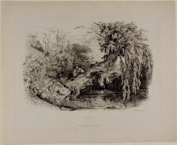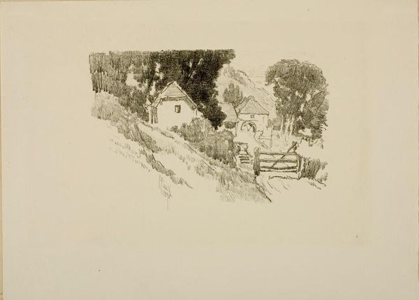 Curator: Joseph Pennell’s "Lostwithiel" presents us with a delicate, almost dreamlike, scene. Editor: The skeletal trees and arched stonework immediately conjure a feeling of forgotten histories. There's a solemn air. Curator: Pennell, known for his etchings, captured this landscape with remarkable attention to the textures of both the natural world and the built environment, using a method that blurs the lines between industrial process and fine art. Editor: Note the church spire in the background—a visual symbol of permanence and spiritual aspiration, standing against what could be ruins. Does it suggest resilience or inevitable decay? Curator: Perhaps it speaks to the enduring nature of material culture versus the fleeting nature of human lives and labor. Editor: Both interpretations enrich the image. Thank you for that layered understanding. Curator: An interesting contrast, isn’t it?