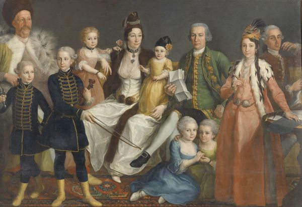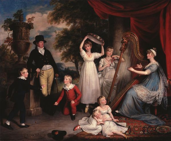 John Singleton Copley made this group portrait of the Copley Family with oil paint on canvas. The smooth surface of the painting, achieved through layers of thin glazes, belies the complex social and material conditions that made such a work possible. Oil paint itself was a commodity, its pigments sourced globally and processed through skilled labor. The canvas, likely linen, speaks to textile production and trade networks. And then there are the clothes: The fabrics, the tailoring, the lace, all emblems of wealth and status meticulously rendered by Copley's brush. Consider too the labor embedded in the scene: not just Copley's artistry, but also the unseen work of maintaining a household that could afford such a display. Even the children's gestures, frozen in paint, hint at the constant effort required to manage appearances. Looking at this painting, we are reminded that art is never just about aesthetics; it's about the intricate web of materials, processes, and social relations that bring it into being.