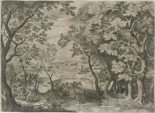 Curator: This is "Wooded Landscape with Three Cows at a Pool" by Thomas Gainsborough. Editor: There's such a delicate quality to it; it feels very dreamlike. Curator: Absolutely, Gainsborough was a master of capturing light and atmosphere. What I find particularly interesting is his experimentation with etching techniques, using a needle to create a very fluid, almost painterly effect with the ink. Editor: I see how the pastoral scene reflects a romanticized view of nature, typical of the period. It begs the question, though: for whom was this idealized countryside intended, and who was excluded from it? Curator: A crucial point. While seemingly bucolic, these landscapes were often commissioned by the landed gentry, reinforcing their power and privilege. Editor: It reminds me that even seemingly innocent landscape art can be deeply embedded in systems of social and economic control. Curator: A vital lens through which to view art history. Editor: Indeed, reflecting on its social context makes the artwork even more thought-provoking.