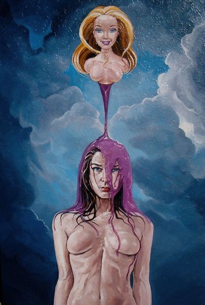 Camilla d'Errico's painting "Unweaving The Rainbow" presents us with a surreal scene rendered in a vibrant, contemporary style. The melting figure of a girl amidst swirling rainbow hues evokes questions about identity, commodification, and the human relationship to nature. D'Errico's art emerges from the late 20th and early 21st century context of globalized pop culture and digital art. Her style blends influences ranging from manga to surrealism, reflecting the cross-cultural currents of our time. Consider how the use of the rainbow, a symbol loaded with diverse cultural meanings, is "unwoven" here to suggest fluidity and deconstruction, perhaps commenting on the social flux of the present. The figure's nudity could be seen as challenging or subverting traditional representations of women in art, and therefore as a reflection of progressive values. To fully understand this artwork, we can look at sources on art history, gender studies, and digital culture. The meanings of art shift depending on when and where we encounter it.