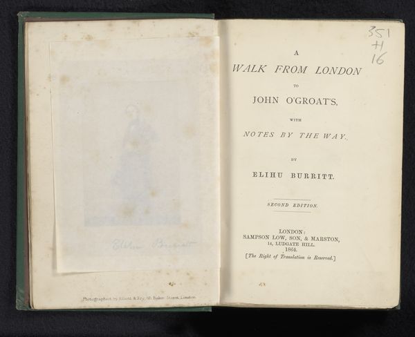 Curator: We're looking at a rather intimate object here: "Leaves from the Journal of Our Life in the Highlands from 1848 to 1861," published in 1868, edited by Arthur Helps. It’s a printed book, bound with what appears to be a textile cover. Editor: The book evokes such a feeling of hushed reverence and curated nostalgia. I can almost feel the weight of lives documented, filtered through the lens of memory. It has this visual silence, doesn’t it? Curator: Absolutely. And it's impossible to consider this journal without acknowledging the context of Victorian-era Britain, specifically the romanticization of the Scottish Highlands. This journal, in its curated form, acts as a deliberate construction of royal image, an idealization of a lifestyle that often obscures the sociopolitical realities of the time. Editor: Precisely! Consider the carefully chosen font, the framed title… it evokes a sense of the established, of continuity, doesn’t it? The leaf motif suggested by the title, along with the book's implied origins in the Highlands, evokes the symbolic weight of nature itself and royal rootedness in a place and time. Curator: Indeed. The "Highlands" became a symbol of untamed beauty and aristocratic leisure, effectively masking the forced displacement of tenant farmers through the Highland Clearances. These romanticized narratives often serve to sanitize history, particularly the uncomfortable aspects of power dynamics. Editor: So, the book becomes not merely a record but a carefully crafted artifact imbued with layers of meaning beyond the immediate content. What a powerful way to consider what aspects of the past people choose to commemorate, and how. The image, the title, the Highland setting – they converge into a constructed reality. Curator: Exactly. It's a testament to how visual and textual representations can shape collective memory and even legitimise certain sociopolitical orders. Food for thought when we consume these narratives today. Editor: Indeed. Makes one pause to think what images and symbols our era is producing…and what unspoken narratives lie hidden within those visual languages.