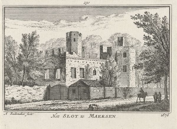 This print, made by Abraham Rademaker, shows the Ruin of Spangen Castle surrounded by water. Ruins have long been potent symbols. They evoke a sense of melancholy and reflection on the passage of time. Here, the ruined castle is not just a pile of stones, but an emblem of history and memory. Throughout the Renaissance and beyond, ruins became a popular motif in art and literature. They represented the decline of civilizations. Think about the Roman ruins that fascinated artists like Piranesi. These ruins are not mere remnants of the past; they are a silent testament to human ambition, conflict, and eventual decay. The ruin reminds us of our own mortality, a powerful psychological undercurrent that stirs deep emotions. Notice how the artist frames the scene, encouraging us to contemplate the cyclical nature of history, where structures rise, fall, and become fodder for future imagination.