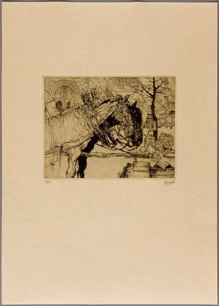 Editor: This is Warren Mack's "Full-blown Roses," a print in the collection of the Harvard Art Museums. The stark contrast gives it a somber feel, despite the subject matter. What do you see in this piece? Curator: Roses are potent symbols, aren't they? They can represent love, beauty, and even secrecy. The black and white heightens the sense of duality—joy and sorrow, life and death—a classic vanitas motif, perhaps? Editor: I hadn't thought of that. The starkness does add a layer of complexity. Curator: Consider the vase: its simple form directs our attention to the blooms themselves, almost like a stage. What memories or associations do roses evoke for you? Editor: I think of my grandmother's garden. So, it's interesting how personal symbols can also hold such universal meaning. Curator: Exactly! The power of imagery lies in its ability to connect us to both individual and collective experiences.