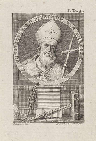 This is Claude Duflos’s portrait of Pope John VIII. Note the papal tiara atop the Pope's head, and the prominent cross on his chest; symbols of spiritual authority. These are not mere ornaments, but potent emblems encoding centuries of religious power. Consider the keys of Saint Peter, crossed beneath the portrait: they are a motif that echoes through time, from ancient Roman symbolism to medieval papal insignia. The keys are a visual shorthand for the power to bind and loose, here entrusted to the papacy. Yet, observe how such symbols transmute across epochs. The cross, for instance, began as an instrument of execution, evolving into the supreme emblem of Christian redemption. This transformation encapsulates humanity's capacity to find hope amid despair. The portrait engages us on a deep level, stirring collective memories and subconscious associations. The visual language of power, sacrifice, and faith—it lingers in our minds long after we turn away, resurfacing in new contexts, forever transformed yet perpetually resonant.