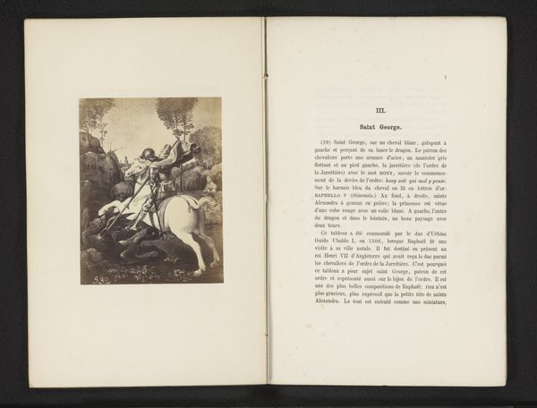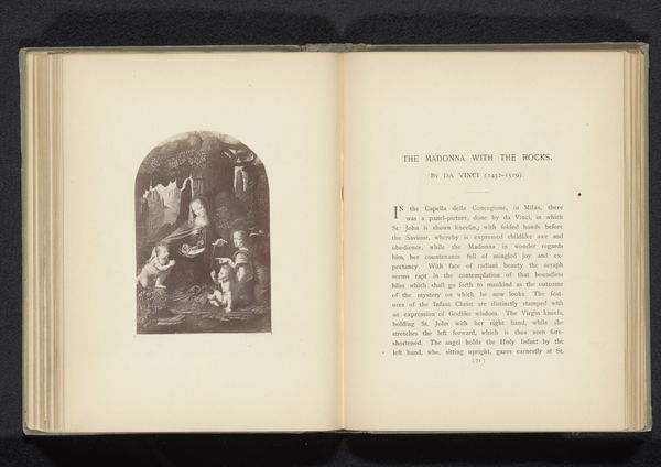 Curator: We’re looking at a photographic reproduction, made before 1887, of an earlier print depicting a painting known as “The Madonna of Saint Jerome.” Editor: It feels muted, like a memory viewed through layers of time and artistic mediation. There's a softness, despite the formality of the Neoclassical style I see here, perhaps due to the photographic process. Curator: The image resonates with familiar iconographic cues – a serene Madonna, an elderly St. Jerome – invoking themes of divine motherhood, scholarly dedication, and, importantly, legacy. We should note the significance of these visual emblems during a period of substantial social change. Editor: Agreed. Considering it’s a reproduction of a print of a painting, the chain of production interests me. What does it mean to create and circulate images of venerated subjects through mass media like photography in the late 19th century? Was this about democratizing access, or something else? Curator: It certainly provided broader access. Prints allowed for the wider dissemination of important images but a photographic reproduction offers a new level of ‘authenticity,’ promising a mechanical record closer to the source painting. That could impact perceptions of truth and value. Editor: Interesting. But what is gained or lost through the photographic rendering? We’re looking at an interpretation of an interpretation, each stage influenced by the technologies and ideologies of its time. The artist, the engraver, the photographer—each contributes to the final image we see. Curator: I think it adds to a broader story around how archetypes persist, how society grapples with images that embody their values and history across evolving media. The image of the Madonna resonates even here in monochrome. Editor: I can appreciate how these reproduction methods made such images available to a wider audience, almost commodifying spiritual imagery for mass consumption, let's call it spiritual branding, and how that impacts cultural capital. Curator: That interplay, between sacred representation and mass production, leaves an enduring mark. Thank you. Editor: Absolutely, thinking through how art’s meaning shifts as its mode of production transforms is something that's key for the historical record.