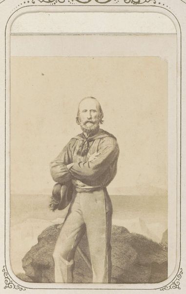 This is an anonymous portrait of Willem III, King of the Netherlands, its date is unknown. The composition is dominated by the figure of the King, rendered in meticulous detail. Note how the stark contrast between light and shadow emphasizes the textures of his uniform and the contours of his face. This deliberate use of chiaroscuro draws the viewer's eye to the symbols of power and authority represented in his attire. Consider the formal elements at play here; the precise lines and controlled shading lend the portrait a sense of gravitas and formality, typical of state portraiture. Yet, the landscape in the background introduces a softer, more romantic element, complicating the image's message. The use of linear perspective is fairly traditional and suggests a desire to convey spatial depth, aligning the work with established representational modes. In conclusion, this portrait is not merely a likeness but a carefully constructed representation of power, engaging with established conventions while hinting at broader artistic and philosophical discourses related to identity and representation.
