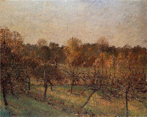 Camille Pissarro painted ‘The Meadow at Eragny’ in France, using oil on canvas. As a leading Impressionist, Pissarro sought to capture the fleeting effects of light and atmosphere in his rural scenes. Painted in the late 19th century, the image depicts a tranquil meadow dotted with trees, cattle and a solitary figure walking on a path, but it's also a statement on social change. During this time, France was undergoing rapid industrialization and urbanization, leading to a growing nostalgia for the countryside. Pissarro, who had a keen interest in social and political issues, often depicted rural life in his paintings, celebrating the values of agrarian society and critiquing the negative consequences of industrial progress. To truly understand this artwork, we must examine the socio-political context in which it was created. Art historians consult a variety of sources, including letters, diaries, and contemporary accounts, to uncover the complex relationship between art and society. Ultimately, art's meaning is always contingent on its social and institutional context.
