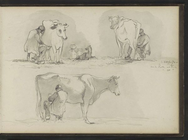 Johannes Tavenraat sketched “Cow, seen from different angles” using graphite, sometime in the mid-19th century. During the Dutch Golden Age, the image of cows in art became deeply entwined with national identity, symbolizing prosperity and pastoral virtue. Tavenraat’s drawings capture the essence of these animals from multiple viewpoints, detailing their forms in a way that evokes both scientific study and a simple appreciation for rural life. In the 19th century, the rise of landscape painting often included livestock to illustrate the harmony between humans and nature. However, it is impossible to overlook how the romanticized view of pastoral life obscures the labor and lives of those who worked the land and cared for these animals, often the rural poor. Tavenraat’s delicate lines invite us to consider the many layers of meaning embedded in such an unassuming subject. They prompt us to consider our relationship with nature and the narratives we construct around it.