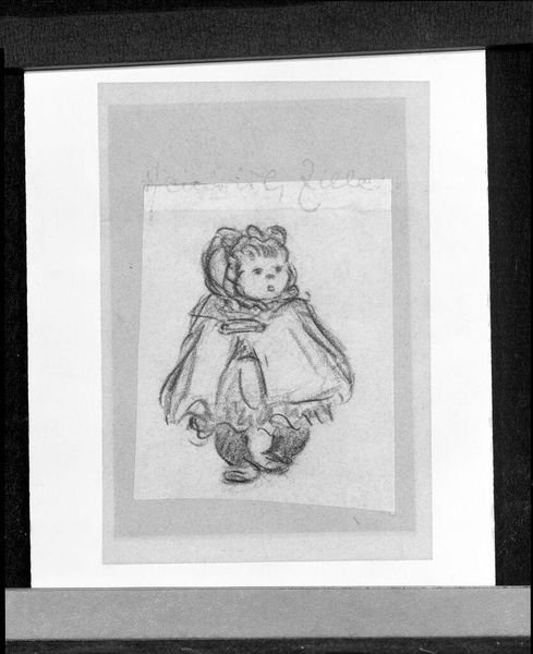 Curator: This photograph by John Howell, currently titled "Little Lady" doll, presents the viewer with an inverted view, a photographic negative. Editor: It’s striking how the tonal reversal lends a somewhat eerie quality, almost ghostlike, despite the subject being a child's doll. Curator: Indeed. One can consider the cultural impact of dolls, how they reflect societal expectations of gender roles. And the choice to invert the image, turning something familiar into something alien. Editor: Absolutely. It makes you think about the manufacturing process too, perhaps the materials used to create such objects, and the labor involved. We see the dress, its polka dots, the bows. It speaks volumes about consumer culture. Curator: Precisely, the political implications of image-making and the presentation of innocence is all on display. Editor: Looking at it now, the textures also stand out, the contrast between the smoothness of the doll and the fabric. It highlights labor and how material contributes to the doll's meaning. Curator: The image certainly offers much to contemplate regarding the politics of play and representation. Editor: A potent reminder of the layers of meaning embedded in even the simplest of objects.