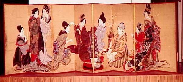Nishikawa Sukenobu’s painting, *Three Girls Having Tea,* invites us into a private, gendered world. Created sometime before 1750, it provides an intimate view of women's social lives during the Edo period in Japan. Here, three figures are gathered for a tea ceremony, an occasion that, beyond its ritual, speaks to social status, leisure, and the cultivation of refined skills. Sukenobu, a prominent artist of his time, often depicted women in domestic settings, reflecting and shaping the cultural ideals of femininity. The women are adorned in elaborate kimonos; their attire signals a certain level of affluence. One woman holds a shamisen, a three-stringed instrument, suggesting artistic talents valued in women of the upper classes. Their expressions and interactions evoke a sense of serene domesticity. The painting offers a window into the gendered division of space and the importance of female social networks. It hints at the complexities of women's lives, navigating societal expectations while finding spaces for personal expression and connection.