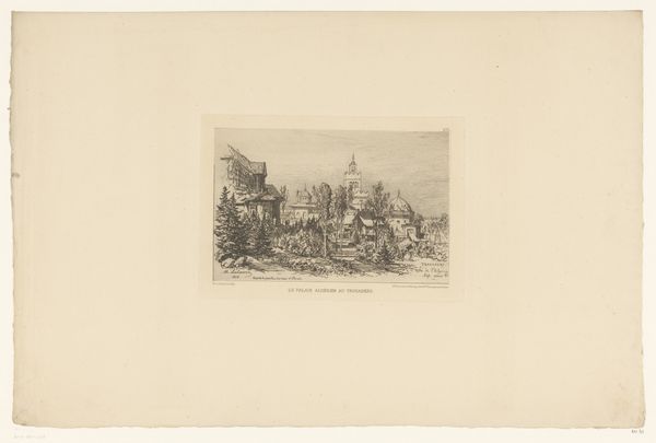Maria van Hohenzollern-Sigmaringen created this view of a castle in an undated etching. What immediately strikes you is the dominance of architectural forms articulated through delicate lines and a monochromatic palette. The composition draws you in with a centrally positioned castle, its structure a play of geometric shapes. The artist's meticulous rendering invites a semiotic reading. The castle, a signifier of power and history, is set against a soft, neutral sky. The lines used to depict the landscape are less defined, creating a contrast between the man-made and the natural. This tension between the ordered architecture and the organic landscape destabilizes a singular reading, inviting us to consider the relationship between human control and the environment. Notice how the etching technique itself, with its fine, precise lines, mirrors the controlled structure of the castle. This artwork, through its formal elements, becomes an exploration of order and chaos, control and freedom, reflecting broader philosophical inquiries into the nature of existence.