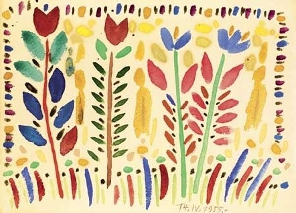 Henri Matisse made "La Perruche et la Sirene" using cut paper, a process that for him was akin to drawing with scissors directly into color. This was a method of artmaking that was immediate and intuitive. Look closely at the flat planes of color and the way each shape seems to float independently of the others. There is a beautiful tension between the density of forms and the expansiveness of the white background. The colors, though vivid, are applied in a single layer, allowing the texture of the paper to remain visible. Notice how the serrated edges of the leaves echo the silhouette of the mermaid. It's like a visual game of call and response. Matisse, like Picasso, understood that art thrives on the dialogue between artists. I'm reminded of Elizabeth Murray's playful manipulation of form and space, though Murray's work has a decidedly more chaotic feel. Ultimately, art is about embracing ambiguity, inviting us to see the world through a kaleidoscope of perspectives.