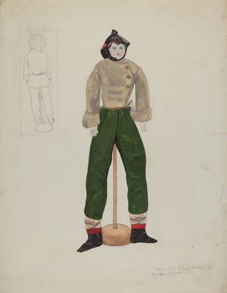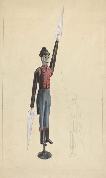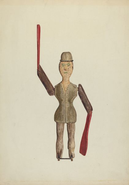 Cushman Parker made this watercolor, Andiron (Marching Hessian). Look at the color; it’s a family of browns, from a creamy tan to a deep chocolate. The way the tones shift and blend gives the figure a sense of age and depth. You can almost feel the texture of the cast iron it represents. My eye is drawn to the figure's face. Parker has given it such delicate, rosy tones. It's a striking contrast to the more uniform shades of his coat and hat. I love how Parker has embraced the imperfections, the wear and tear of the andiron, by emphasizing the rusty, mottled surface of the object. Thinking about other artists, I'm reminded of Joseph Stella's interest in American industrial subjects, though Parker brings a more intimate, folksy touch. Ultimately, this piece reminds us that art is all about seeing the extraordinary in the ordinary.