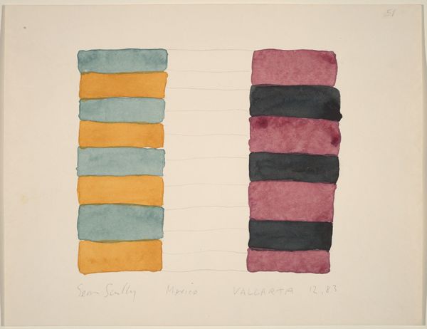 Sean Scully made "Traveller" in 1984, using watercolor on paper, and you can really see the process in the finished piece. There’s something about the way he’s built up these soft blocks of color, it’s so simple but it also lets the light through. The materiality of the watercolor lends itself to this incredible texture. You can see how the colors bleed into each other ever so slightly, especially in the right-hand segment, where a gorgeous, chalky rose sits next to an ultramarine blue. It's as though you can see the brushstrokes moving around on the page. The way the colors interact like that reminds me of Agnes Martin's quiet, meditative grids, but with more oomph. "Traveller" isn't just about making a statement; it’s about creating space, hinting at the possibilities within and between things, and it’s really beautiful.
