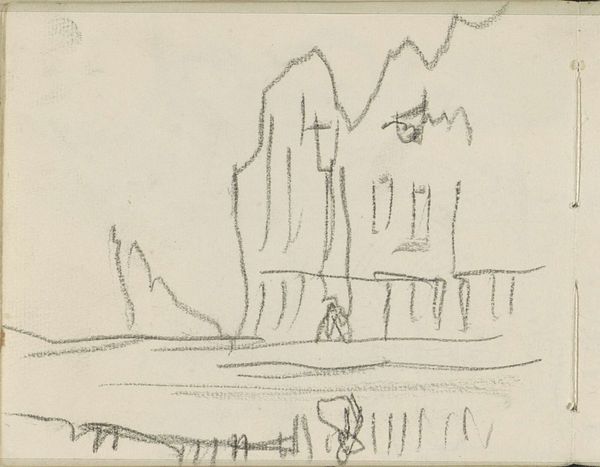 Willem van der Nat made this drawing, "View in a Street," with graphite on paper. It’s intriguing how van der Nat uses such minimal lines to suggest a complex urban scene. This was made during a time of great change for Dutch cities, with industrialization and urbanization rapidly reshaping the landscape. Consider the visual codes van der Nat employs: the simple lines hinting at buildings and structures, and the way these elements are composed to suggest depth and perspective. Could this be a commentary on the changing face of Dutch society? Is it a celebration of urban life, or a critique of its alienation? Historians like myself delve into the social and economic conditions that shaped the artist's vision. Through careful research, we can better understand its place in the cultural landscape of its time.