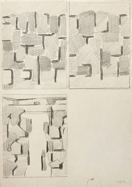Hryhorii Havrylenko made this pencil sketch, 'Four Compositions', sometime in the mid-20th century. It's all about the push and pull of shapes, you know? Like how sometimes you just scribble to figure things out. Look closely and you'll see the paper's texture doing its own thing under all those lines, a real player in the game. Havrylenko isn’t trying to hide the process; it's right there, front and center. The diagonal shading in each square is like a vibe, setting the mood. The dark bars jump out, like letters in an alphabet we can't quite read. The whole thing feels like a puzzle, each block a different way of seeing the same idea. It's got this quiet energy, reminds me of Sol LeWitt's wall drawings, where the idea is as important as the execution. It's like Havrylenko is saying, "Here's a thought, now what can we do with it?"