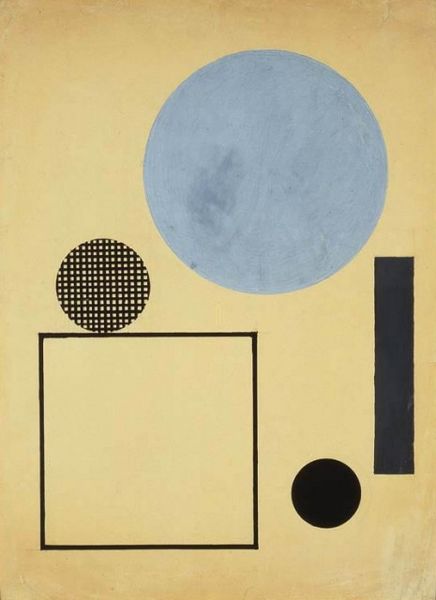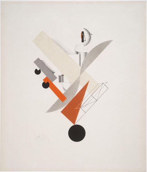 Curator: Wassily Kandinsky’s work, currently displayed in the Solomon R. Guggenheim Museum here in New York, compels viewers to dissect abstract forms and imbue them with emotional weight. This particular painting from 1924, titled "Black Relationship", is a striking example. Editor: My initial response is one of slight unease. The large black circle looming in the upper corner gives a sense of imbalance, almost threatening to eclipse the more colourful geometric forms clustered below. Curator: Kandinsky, during this period, was deeply influenced by the Bauhaus. These simplified forms - circles, triangles, rectangles - were for him, not just shapes, but vessels of inner emotion, mirroring our psychological architecture. Do you perceive the “relationship” the title suggests? Editor: I see a controlled tension. The relationships seem strained. There's dynamism, certainly, but the sharp lines intersecting softer shapes and colours suggest conflict or, at the very least, negotiation. One might read the composition through the historical context of the time. This piece emerges in the interwar period—an era of immense cultural change, clashing ideologies, and burgeoning urbanity, no? Curator: Exactly! Post-World War I, there's a collective effort to build new visual vocabularies to symbolize modernity. In "Black Relationship," the stark, unyielding circle might be the established order or even the heavy weight of recent history. Editor: And perhaps the colorful shapes and lines could represent different emerging identities, political leanings, perhaps all converging or colliding? It makes me consider the artist's social circles. The Bauhaus, after all, wasn't operating in a vacuum. Curator: It didn't. Kandinsky was experimenting, striving to tap into universal spiritual experiences through art. But ultimately, he offered a canvas, not a conclusion. He saw forms and colours as speaking a language understandable on a deeper plane. What does this work convey to you? Editor: I walk away feeling that Kandinsky invites viewers to bring their own individual context, or cultural awareness, to interpreting an artwork like "Black Relationship." The experience suggests a complex narrative or allegory about contemporary society. Curator: It speaks to our individual processes and what our minds choose to assemble—whether it’s the 1920s or our era— isn’t it remarkable?