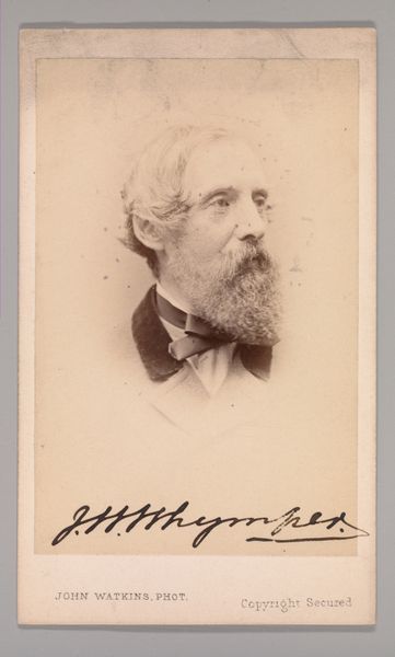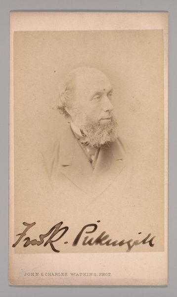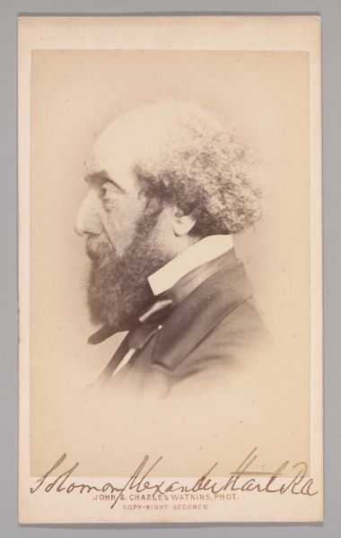 This photograph of John Frederick Lewis was made by John and Charles Watkins, likely in their Parliament Street studio during the 1860s. It's an albumen print, a process which was very common for commercial portraiture at the time. The image is created by coating paper with egg white and silver nitrate. The Watkins studio would have produced this by the thousands. Looking at this image, you can see why the albumen process was so popular. It yields an incredible level of detail and a warm sepia tone. Notice the sharp rendering of Lewis’s beard, and the soft glow of the light on his face. What might have been lost by way of intimate artistic touch, was more than gained in the way the image could then be reproduced and distributed. This kind of studio portraiture became a powerful means of social representation. Not only did it democratize image-making, but it also gave prominence to people like Lewis who, by commissioning portraits, solidified their place in the cultural landscape. It is an early example of the power of photography as a tool for shaping identity and solidifying social hierarchies.
