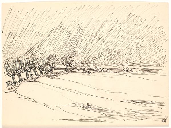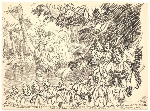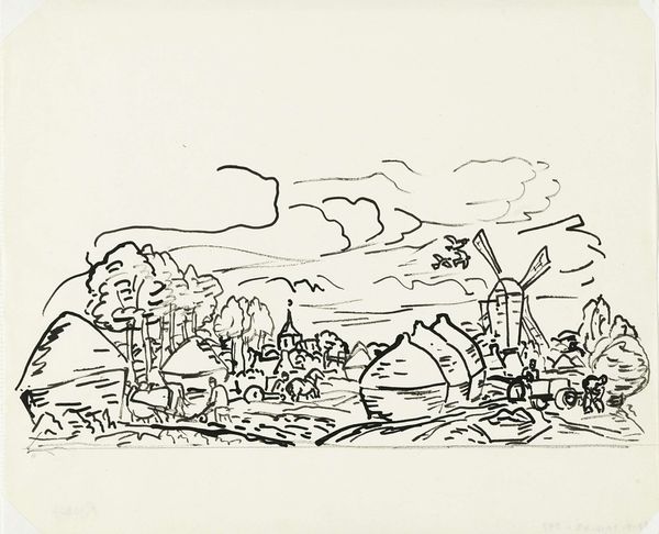 Alfred Kubin made 'In Flight' with ink on paper. The marks here are all about speed. You can see how the pen barely touched the paper in some places, scratching out the barest suggestion of form. I love the way that Kubin uses a kind of shorthand to describe the figures, turning them into almost cartoonish symbols. It is as if the people are just part of the landscape. They are made of the same stuff as the rocks and the plants. Look at the dark hatching around the buildings and figures. The ink is almost a weather system of its own. It reminds me a little bit of James Ensor's etchings with their nervous energy and strange, dreamlike imagery. Kubin's work invites us to embrace the messy, unresolved, and contradictory aspects of being human. And maybe that's the most beautiful thing about it.