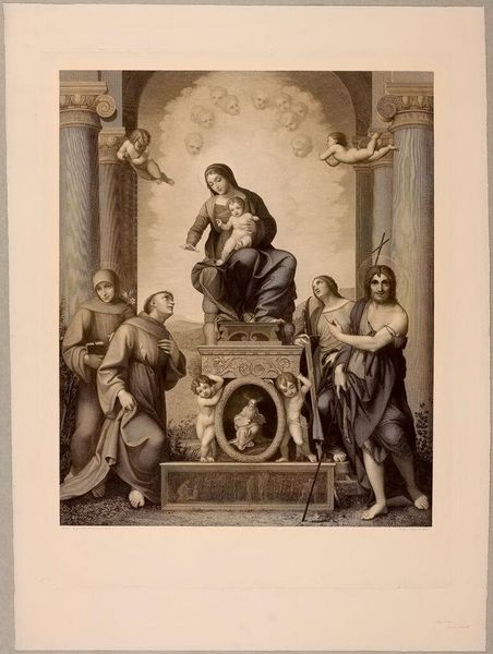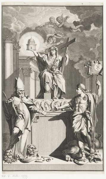 John Christian Rauschner created this plaster relief of Friedrich Wilhelm II in the late 18th century. It depicts the king's bust being crowned with laurel by a cherubic figure, flanked by allegorical representations of abundance and military strength. The laurel wreath, an ancient symbol of victory and honor, reappears throughout history, from the brows of Roman emperors to Renaissance paintings. Here, it signifies the king's triumphs and virtues. But consider its evolution: Initially a pagan symbol, it was later adopted by Christianity to represent the ultimate victory over death. This evolution reflects how symbols adapt across cultures and eras. Such imagery taps into our collective memory, evoking a sense of timeless glory and power. The artist uses this visual language to elevate Friedrich Wilhelm II, engaging viewers on a subconscious level with enduring symbols of authority and reverence. As we observe, this symbol experiences a cyclical progression, resurfacing and evolving, accumulating new layers of meaning throughout history.