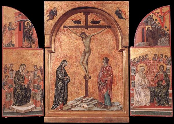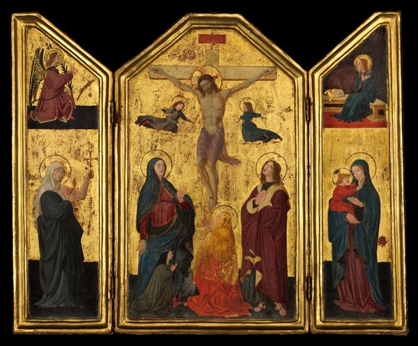 Fra Angelico painted this “Crucifixion” using tempera and gold on panel, sometime in the first half of the 15th century. Commissioned during a period of religious fervor, the painting invites us to reflect on themes of salvation, sacrifice, and divine suffering. Consider the identities and roles of the figures assembled at the foot of the cross. Their presence speaks to the communal aspect of mourning and the diverse ways in which faith is expressed. How do their gestures and expressions convey grief, devotion, and acceptance? The use of gold leaf is not merely decorative; it represents the divine light and the heavenly realm, framing the earthly tragedy with a sense of eternal significance. Fra Angelico’s composition balances the stark reality of Christ’s suffering with the promise of redemption. The painting serves as a reminder of the power of faith and the enduring human capacity for empathy and spiritual contemplation.