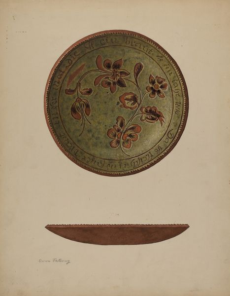 Dimensions: overall: 45.1 x 35.5 cm (17 3/4 x 14 in.) Original IAD Object: 8 7/8" Dia 7/8" Deep(interior) 6 1/4" Wide(interior) 1 3/16" High(exter)