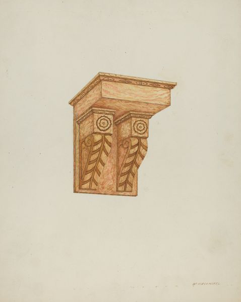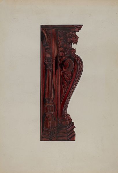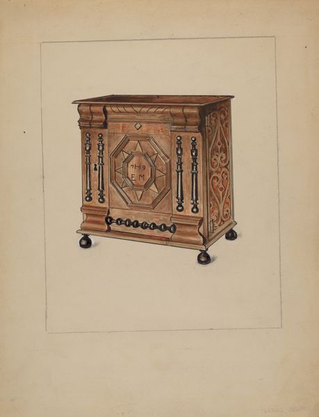 Samuel W. Ford rendered this wall cupboard in watercolor and graphite, achieving a remarkable level of detail. The brown hues and delicate gradations give the piece a warmth and depth that feels incredibly tactile. Focusing on the door, you can see an almost ghostly carving of an eagle or perhaps a phoenix, rendered in a lighter tone as though bleached into the wood. This area is fascinating because it highlights the artist's commitment to portraying the effects of time and wear on a physical object. You can almost feel the hand of the craftsman who originally carved the cupboard, and sense the layers of history embedded in its surface. It makes me think of Charles Burchfield, who was also interested in depicting vernacular architecture. Like Burchfield, Ford seems to be saying something about the enduring power of everyday objects, their ability to carry memories and tell stories across generations. Isn't it amazing how a simple rendering of a cupboard can evoke such complex ideas about history, memory, and the passage of time?