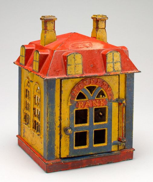 Editor: Here we have an earthenware ceramic incense burner, crafted around 1830 by the Staffordshire Potteries. It depicts a quaint house, almost like a fairytale cottage. What draws my eye is how much detail they were able to achieve through earthenware. What do you see when you look at this object? Curator: Well, focusing on its materiality, this object raises questions about production. Staffordshire, at the time, was a hotbed of ceramic manufacturing. Were these pieces made by individual artisans or factory workers, or by dividing labor in workshops? That changes the perception, wouldn’t you agree? Editor: Definitely! So, the labor behind even decorative pieces like this adds layers of complexity? The piece is charming, so considering factory production does add a critical lens. But why depict a house? Was there something especially symbolic about it? Curator: Consider the cottage's cultural context. Early 19th-century England was experiencing shifts in land ownership and urbanization. Portraying an idyllic home may express a longing for a pre-industrial lifestyle or become something of a commodity itself for city-dwellers looking to maintain some semblance of country life within urban interiors. Editor: So it is also a statement on how consumerism and the notion of "home" were beginning to change due to labor division during the Industrial Revolution? Curator: Precisely. Even something as seemingly simple as an incense burner opens a window into those evolving societal relationships and the means of production behind these everyday objects. Editor: That makes you consider what "home" actually means. I never considered it through the lens of labour division and class! I learned a lot! Curator: Indeed. By exploring the materials and context, we uncover deeper meanings and broader social narratives embedded within art.