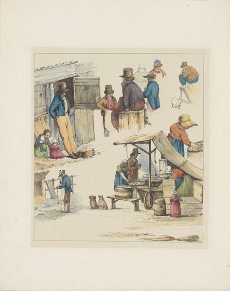 Christiaan Andriessen made this sheet of figure studies in 1833 using pen, brush, and watercolor. The figures, arranged without a clear narrative, offer glimpses into the everyday. Note the prominence of musical instruments: the trumpet, the pipe, and the caged bird. Music, since antiquity, has symbolized harmony, but also the ephemeral nature of life, a vanitas motif. Consider the caged bird; it echoes through time, appearing in Renaissance paintings as a symbol of the soul trapped within the body, or as a metaphor for freedom denied. Yet, in other contexts, the bird signifies joy, a flight of fancy, and a connection to the divine. The image of the bird touches something primal in us—a longing for freedom, an echo of mortality. These echoes and resurfacings through history reveal how our subconscious shapes our perception. Andriessen’s gathering of figures invites us to reflect on the cyclical nature of symbols, and their ability to engage us on emotional and psychological levels.