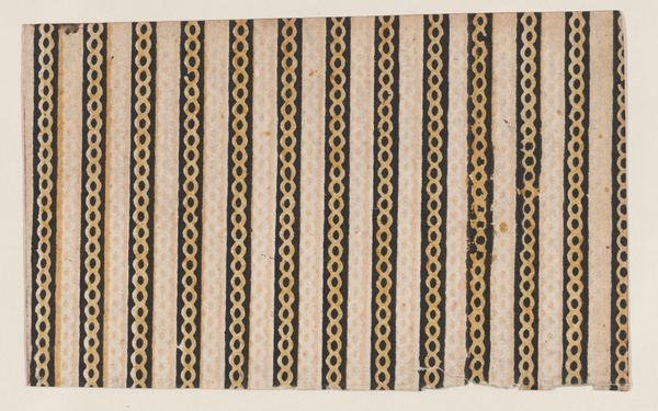 Curator: This remarkable textile fragment, known simply as “Panel,” dates from the Roman period in Egypt, specifically the 3rd to 6th century AD. It's held here at the Art Institute of Chicago, offering a glimpse into Coptic textile traditions. Editor: It has such an earthy, worn quality. The dark patterns against that faded ground really give a sense of age. It’s beautiful, in a subtle, understated way. Curator: Indeed. The appeal extends beyond its age. This panel, like many Coptic textiles, provides valuable insights into the socio-religious context of Roman Egypt. These textiles were often found in tombs, suggesting their use in funerary rituals or as garments for the deceased. The motifs present are equally revealing. Editor: Formally, the frieze-like arrangement of figures, enclosed within those distinct borders, presents an interesting visual rhythm. Notice the repeating motifs and how they're stylistically rendered with simple, almost iconic shapes. It's not about naturalistic representation but more about symbolic communication through repeated elements. Curator: Exactly! The prevalence of certain motifs - animals, human figures, crosses - speaks to the syncretic nature of Coptic culture, blending Egyptian, Roman, and Christian influences. The arrangement you noted is quite interesting when we examine these pieces in place; were they used as decorative elements of clothing? Curtains? What role does that location, as selected by the patrons or weavers, communicate about values of status and social structure? Editor: Also note the contrast between the densely packed central band and the simpler border designs. It creates a visual hierarchy, drawing your eye towards that main field of activity where these various symbols interact. The restricted color palette as well supports the reading. Curator: Considering these textiles are also discovered in non-funerary settings, we must consider the role these textiles played within the everyday sphere. These complex iconographies that fuse symbols and aesthetic values showcase these artisans who occupied fluid religious, ethnic and cultural communities. What sort of value, religious or secular, was added when consumers came into contact with such imagery on a daily basis? Editor: Looking at its woven structure and overall organization gives this 'Panel' visual presence which extends beyond mere decoration, right? This artifact reflects the creative values of an interconnected world with trade networks spanning all across Africa and Eurasia! Curator: You're right, this “Panel” gives testament to a cross-cultural context where material culture offers us crucial glimpses into communities throughout history! Editor: Yes, its understated and earthy materiality communicates aesthetic simplicity while providing insights through symbolic communication, no?