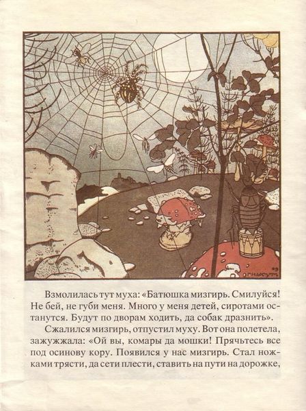 This illustration from ‘Fairy Tales: Teremok’ was made by Heorhiy Narbut, probably using ink and watercolor. The limited palette creates a visual harmony, it's like he's building the image block by block. Look at the bear - he's not just a figure, he's a dark mass, a force of nature. The artist's process feels very present, particularly in the way he renders the rain with these deliberate, cascading strokes. There’s a stark contrast in textures; the bear's fur seems almost velvety, while the rain has a sharp, linear quality. It's like Narbut is inviting us to touch the image, to feel its different surfaces. Narbut’s work reminds me a bit of Aubrey Beardsley, both had a talent for distilling forms down to their essence.