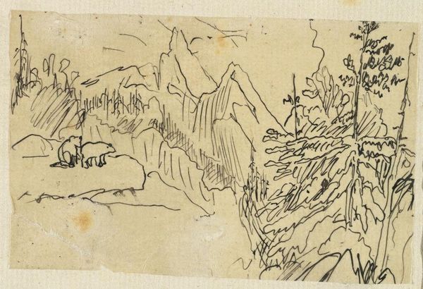 Curator: We're standing before John Marin's "Landscape," created in 1915. It's primarily watercolor and colored pencil on paper. Editor: Ah, a breezy day dream rendered in blue! It has that loose, immediate feel of a quick sketch, but the more I look, the more solid forms resolve themselves. I get a wistful, almost melancholy vibe from it, too. Curator: Melancholy is interesting, given Marin's general reputation for dynamism. Do you think the monochromatic scheme contributes to that? Indigo and the pale ground create such a narrow spectrum here. Editor: Absolutely. That restrained palette really focuses the energy. The repetitive marks become almost hieroglyphic. It's less about representation, more about feeling a place, capturing its fleeting essence. I imagine Marin standing en plein air, whipped by wind, trying to hold onto the scene before it dissolved. Curator: Well, you touched upon its abstract elements, which were quite groundbreaking at the time. He pushes the boundaries of traditional landscape painting by prioritizing subjective interpretation. The stylized motifs are open to diverse readings, almost a modern glyph indeed. Editor: Do you see that tension as inherent in American modernism? This urge to distill experience to these essential forms that speak beyond just pure description? I keep seeing little sailboat forms—or am I just projecting now? Curator: The interplay between observation and abstraction, and certainly the search for uniquely American visual language—that was certainly a recurring ambition among artists in Marin's circle. Your boats? Maybe they are a bit of wishful projection. For me, the fractured shapes, the nervous energy suggests more turbulent elements. Perhaps an internal landscape too? Editor: Right! The boats might be mine—the feeling, definitely, belongs to the painting. Looking at it now, I think I better understand this emotional tension of his landscape, its interiority… Thank you for unveiling those layers for me. Curator: It's always rewarding to see how the symbolic resonances of art unlock individual responses. Perhaps its evocative strength lives exactly there, in its capacity to merge with your feelings.