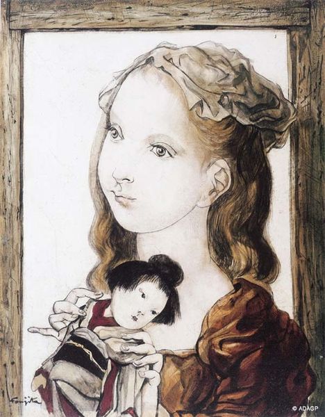 Editor: Here we have Maria Bozoky’s "Two Little Contessas" from 1993, a painting rendered in watercolor and oil. I'm struck by the seeming simplicity of the materials used in this portrait and how they contrast with the regal title of the artwork. What does this composition say to you? Curator: The layering of watercolor and oil—consider the artist's labor in coaxing those materials to coexist. Is it really just a portrait, or is Bozoky also investigating the relationship between these media? There's a tension here: The immediate accessibility of watercolor is juxtaposed with the oil paint's historical association with high art and patronage. It makes you think about production; who is this made *for*? Editor: That's a great point about production. The 'watercolour illustration' tag made me think this might have been reproduced at one point. Would the status of the artwork change based on how accessible it was for different social classes? Curator: Absolutely. Were these "Contessas" originally disseminated as widely reproducible images, through printed media or affordable artworks, rather than exclusive, commissioned pieces? What does that act of reproduction do to the notion of "contessa?" The value and labor shift entirely based on those questions of accessibility and original intent. Editor: So, by considering the materials and how they are used and circulated, we can interpret the broader meaning behind this image of the two young 'countesses'? Curator: Precisely. The value isn't just aesthetic, it's embedded in that complex network of material production and consumption, of social aspiration and representation. It allows us to interpret this "simple portrait" as a reflection on social standing, status, labor and artistic creation. Editor: Thanks, that opens up a whole new layer to how I view "Two Little Contessas". Curator: Indeed. Material analysis pushes us to ask these crucial questions, which allow us to critically investigate these portrayals and reflect on what is beyond the simple aesthetics.