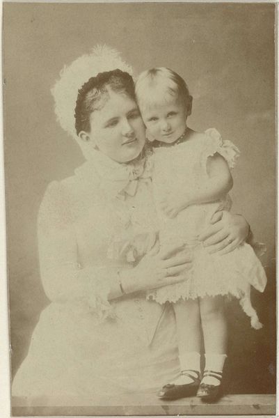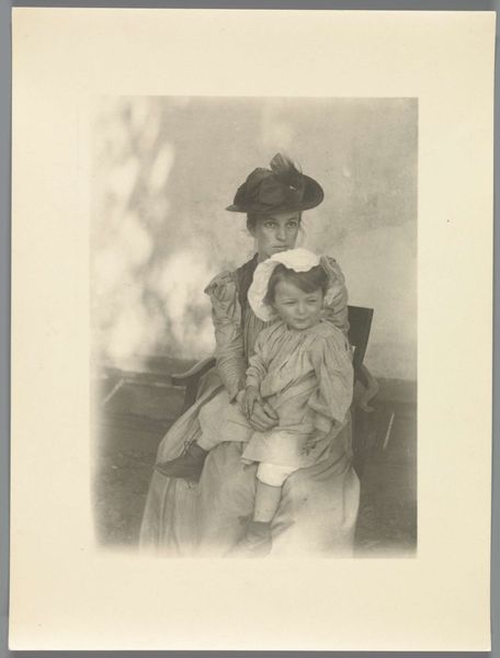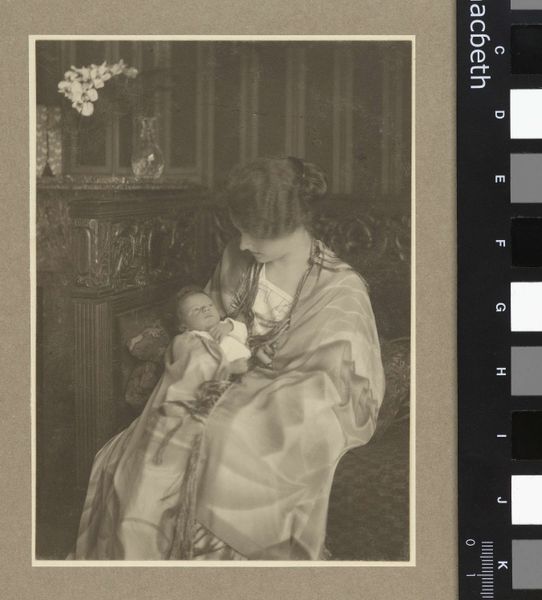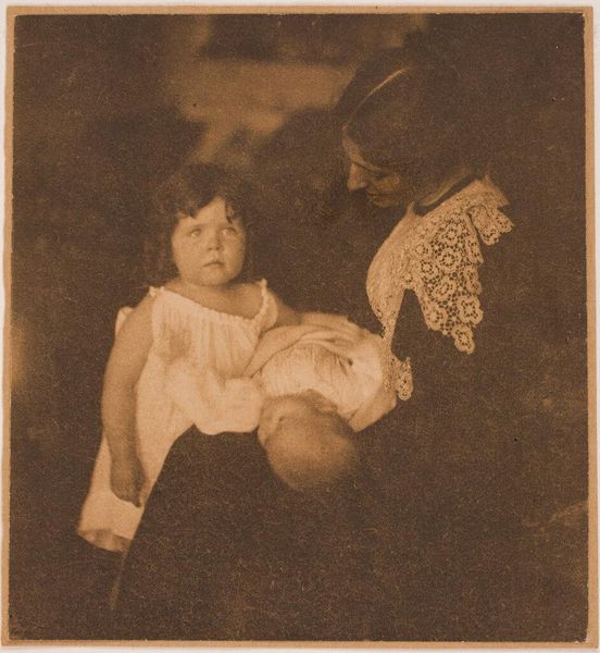Editor: This is Gertrude Kasebier's "Susan McAndrew," a lovely, intimate photograph. There's a real tenderness in the image. What do you see in this piece? Curator: Kasebier was incredibly savvy at crafting a public image of motherhood. It’s no accident that her work was gaining traction when debates about women's roles were at a fever pitch. Is she depicting a universal experience, or subtly commenting on societal expectations? Editor: So, it's not just a sentimental image but a statement? Curator: Precisely. Consider where it was shown, who bought it. These choices shaped its meaning and impact. It's a reminder that even intimate scenes can be deeply political. Editor: That reframes my understanding entirely; I will definitely look at this photograph differently from now on. Curator: Indeed, seeing art as enmeshed in broader social forces makes it endlessly fascinating.
