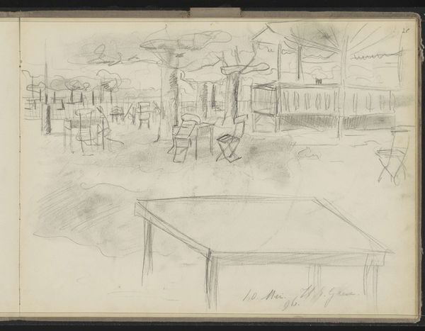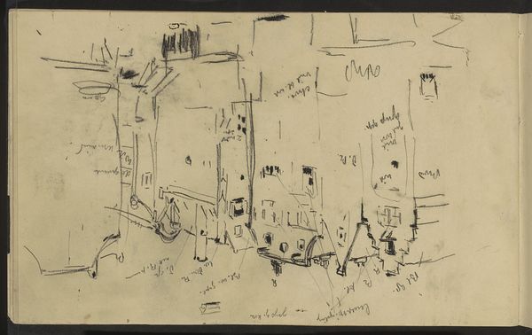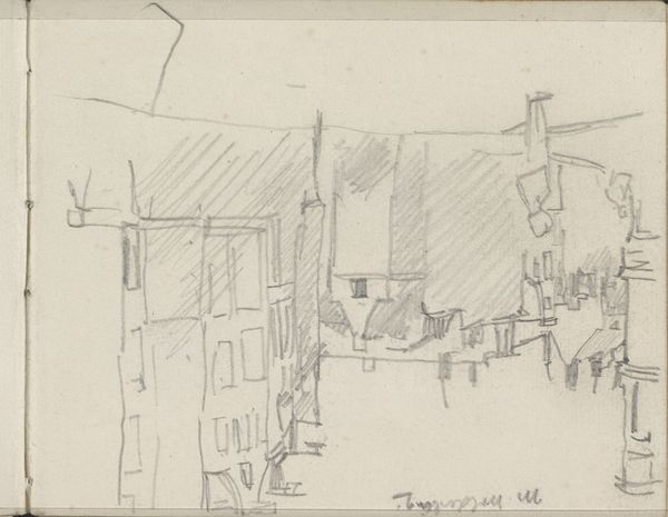 Editor: This drawing is entitled "View of the Paleisstraat in Amsterdam at Twilight," and it's by George Hendrik Breitner, dating from around 1886 to 1891. It's a pencil drawing, and I find it very evocative despite its unfinished quality. What strikes you most about this cityscape? Curator: I see a negotiation between public and private space, illuminated, but only partially revealed, by the ambiguous light. Breitner, deeply engaged with the burgeoning industrialization and its impact on urban life, presents not just a street, but a stage. The sketch-like quality isn't just a stylistic choice, it is, I argue, deliberate. It reflects the fleeting, often obscured, experiences of city dwellers – especially those marginalized by gender and class. Editor: A stage? How so? Curator: Think about the Paleisstraat at that time. Rapid urbanization meant shifts in social dynamics, particularly for women entering the public sphere. Breitner's perspective—the slightly blurred figures, the suggestion of light—invites us to consider whose stories are being told, and from what viewpoint. Is this street accessible and safe for all its inhabitants? This is not a mere snapshot. It's a prompt. Editor: I hadn't considered that. So, the 'unfinished' feel is almost a challenge to the viewer to complete the narrative, to fill in the blanks for those unseen or unheard? Curator: Precisely! And think about Impressionism as more than just a style, but as a movement concerned with representing the instability and precarity of modern life. Breitner captures the moodiness of an era grappling with immense change. Editor: That's given me a completely new perspective on it! I always thought of Impressionism as pretty, but not necessarily political. Curator: Art is rarely neutral. By focusing on everyday moments, Impressionists often reflected, either consciously or unconsciously, the societal shifts and power dynamics of their time. Understanding those contexts helps us read these works with a more critical eye.