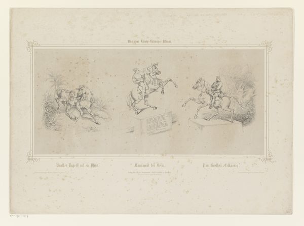 This is a black ink drawing, made by an anonymous artist. It depicts a man riding a donkey through the Sabiner mountains. The drawing is made with delicate lines, with great attention to detail and texture. The ink is applied with precision to capture the light and shadows of the scene, as well as the movement of the donkey. You can clearly see the care put into each stroke, from the animal's fur to the rugged terrain. The choice of ink as a medium is important. It's a traditional art material associated with skill and control. Here, it allows the artist to create a sense of depth, and a rich impression of the depicted journey. It’s a reminder that even simple materials, when wielded with expertise, can convey complex narratives and evoke powerful emotions. This artist, though anonymous, demonstrates the enduring value of time-honored practices.