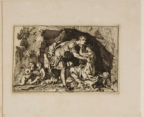 Editor: Here we have Delacroix’s "La Pietà", created as a print in 1852, now housed at the Met. It’s a powerful depiction of grief, and what strikes me is how theatrical the composition is, almost like a stage. What do you see in this work? Curator: That’s a keen observation about the theatricality! I see Delacroix tapping into a long history of Pieta imagery, a tradition deeply embedded in Western religious and artistic culture. Think about the social and political function of this image in 19th-century France, decades after the Revolution. How might a deeply emotive religious scene like this resonate with a society still grappling with profound upheaval and searching for stability? Editor: So, you're saying it’s more than just religious devotion; it's about societal healing? Curator: Precisely. Delacroix, known for his Romanticism, uses the historical and religious symbolism to speak to contemporary anxieties. Notice the line work; it's not just about depicting a scene, but evoking raw emotion and communal sorrow. How does that aesthetic contribute to the political impact, do you think? Editor: I guess that the drama pulls people in. It makes a well-known story newly relatable. Seeing familiar faces react in a raw, relatable manner encourages compassion, prompting viewers to look inward and connect on a deeper, maybe even spiritual level. Curator: Exactly! And remember that art, particularly prints like this, had a public role. They circulated ideas, shaped sentiments, and reinforced cultural narratives. This Pieta, therefore, engages with faith and history while also intervening in the socio-political landscape of its time. It makes us reflect on the powerful roles art plays in shaping a society’s collective memory and values. Editor: That's fascinating, I hadn't considered its active role in society beyond the aesthetic aspect. Thank you! Curator: It was a pleasure! Always remember that artworks are not just pretty to look at, but they have agency and impact far beyond the gallery walls!