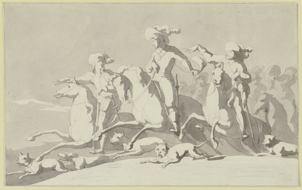 Gaspare Diziani created this lively ink drawing of dancing putti, or cherubic children, sometime before his death in 1767. The putto is not merely a decorative figure; it is a potent symbol. These figures are descendants of the ancient Greco-Roman god Eros, or Cupid, symbolizing love and desire. Here, they carry garlands of leaves, evocative of Bacchic revelry and the vitality of nature. We see them frolicking through Renaissance paintings, adorning Baroque ceilings, their forms shifting, yet their essence remains. Like the ancient chorus, the putti embody communal joy and divine presence. They are an expression of life's vital energy, resonating through centuries, always reminding us of the eternal dance of human emotions.