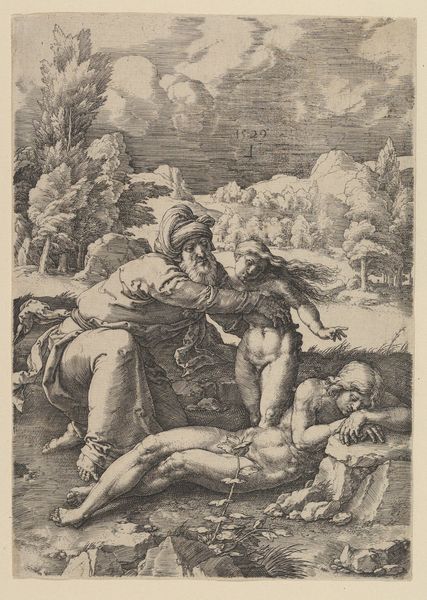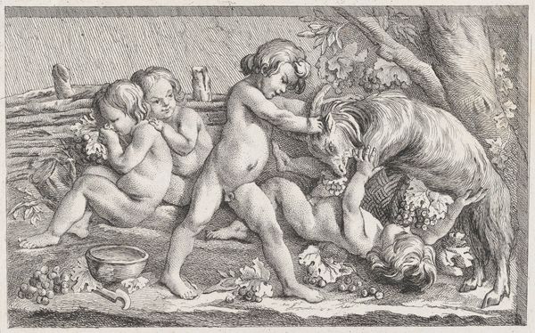 Willem Panneels created this etching, Atalanta and Meleager, in the 17th century. The visual impact is immediate, a flurry of dense lines capturing a scene of dynamic action. The composition teems with figures and textures, and the contrast between light and shadow adds depth to the compact space. Panneels masterfully uses line to define form and create a sense of movement. Look at how he renders the musculature of the figures versus the bristly fur of the boar, giving each texture its distinct character. The interplay of light and dark is not just descriptive but also expressive, heightening the drama of the hunt. It recalls the dynamism of the Baroque movement, engaging with its themes of transformation and emotional intensity. Consider, too, the symbolism embedded within the scene. The hunt is not merely an action but a narrative steeped in classical mythology. Panneels captures a moment of confrontation and triumph, inviting us to delve into the interplay between humans and nature, order and chaos. This work shows how an artwork, through its form and subject, becomes a site for exploring human existence.