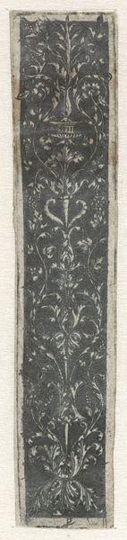 This is a design for a knife handle, decorated with leaf tendrils, made by an anonymous artist. Though modest in scale, the design reflects a sophisticated understanding of materials and processes. The symmetry and detail suggest it was likely intended for an affluent customer, reflecting status through the skilled labor required for its creation. The design's pattern of stylized foliage, precisely rendered, speaks to a well-established tradition of ornamental engraving. Such detailed work would have demanded considerable skill and time, subtly encoding the value of labor within the finished object. Consider the hand that would have carefully etched these lines, the tools they would have used, and the social context in which such skills were valued. It reminds us that even the simplest everyday object can embody deep cultural meaning.
