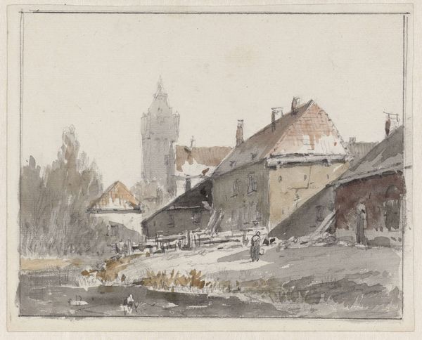Editor: So, this is "Metzler House in Bonames near Frankfurt" by Carl Morgenstern, a watercolor and pencil drawing. There's something serene and dreamlike about it, but I'm curious – what jumps out at you when you look at it? Curator: Well, let's consider the materials themselves. Watercolour, pencil… these are relatively accessible materials. What does it say about the artist's social standing or the intended audience, that they weren't using, say, oils and canvas? Who was this work made *for*, and under what conditions? Were they selling sketches to middle class Frankfurt tourists on their way to a resort destination or were these simply personal sketches? Editor: That’s a good point. I hadn’t thought about the social implications of the medium itself. So, the choice of watercolor speaks to accessibility and maybe a different type of patronage? Curator: Precisely. And look at the architecture depicted. It's a blend of vernacular and elevated design; how does that relate to the emerging bourgeoisie of Frankfurt, who were appropriating aristocratic aesthetics, adopting certain markers of class through the labour required to erect and occupy spaces such as these? Does this perspective seem aspirational or even subversive in any way, considering how the means and consumption of these material goods reflect society at large? Editor: It's interesting to think about the buildings themselves as products of labor and social aspiration, and how the medium of watercolor reflects that. Is there a critique implied? Curator: Perhaps. The ease of production afforded by the medium challenges a strict dichotomy between art and craft, doesn't it? The material reality reframes traditional art historical narratives. The romanticism blends the elite ideals of home ownership for relaxation or respite with the quickly accessible materiality that permits such a view to even be enjoyed and sketched in the first place. Editor: I never considered it that way. I was initially drawn to the scene itself, the calm mood. Curator: Which is what Morgenstern intended as a visual effect, the goal being relaxation, yes, but the product is both visual pleasure as well as an easily reproducible souvenir for the modern traveller! The ease by which they acquire it, however, might speak to larger structures of class in nineteenth century Germany. Editor: So, by examining the materials and social context, we can see this artwork as more than just a pretty picture; it's a window into the socio-economic dynamics of its time. I learned a lot! Curator: Precisely! I think by engaging with such an art work via a social and material focus really illuminates some of the larger frameworks of society, class and material in general, and how intertwined each really are.