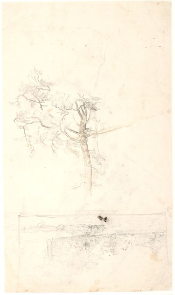 Dankvart Dreyer sketched "Udsigt over et bakkehæld til et vidtstrakt landskab" using graphite, a medium that allowed for quick, expressive lines capturing a vast landscape. Dominating the foreground is a large tree. Solitary trees, stretching back to antiquity, have often symbolized a connection between the earthly and the divine. Consider how the motif of the tree recurs throughout art history, from the Tree of Knowledge in biblical art to the Romantic era’s fascination with nature’s sublime power. In earlier works, the tree may have represented knowledge or sin; here, it evokes a sense of solitude, an almost spiritual introspection. The way Dreyer sketches the tree taps into something primal, engaging us on a subconscious level. It reminds us that symbols are not static; they are constantly reshaped by cultural memory, personal experience, and the evolving human psyche. The landscape and its components—trees, water, and land—become containers for our own emotional projections.