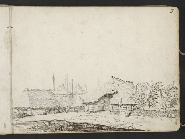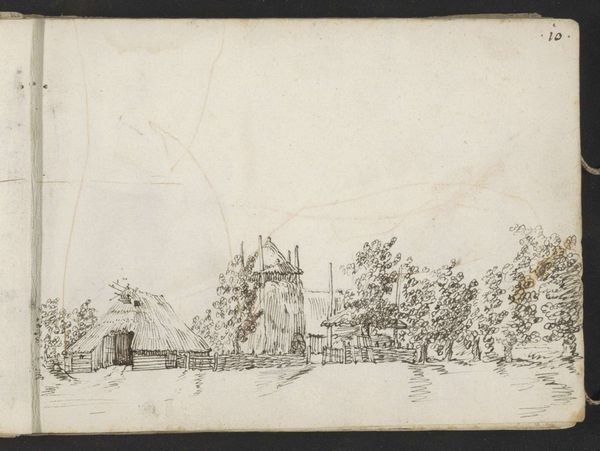 Editor: So, this is Abraham de Haen the second’s pen and ink drawing, "Gezicht op boerderij Kloosterschuur," from 1731, housed here at the Rijksmuseum. It has an airy quality, with the details captured simply, yet somehow the scene feels… complete. What stands out to you about this piece? Curator: What interests me here is the context. In the early 18th century, the Dutch Republic was experiencing a period of relative peace and economic decline, certainly compared to its Golden Age. How might this influence artistic production and its consumption? Were these landscapes a form of visual escapism or were they acting as affirmations of national identity connected to the land? Editor: Escapism, maybe? This looks so different from some of the dramatic history paintings that were also popular. Curator: Exactly! Consider the rise of the bourgeoisie and their changing patronage. Were they interested in grandiose displays of wealth and power, or were more intimate, pastoral scenes a better reflection of their aspirations and self-image? This simple country vista, created using readily available materials, speaks to an increasingly influential middle class. Editor: That’s a perspective I hadn’t fully considered. It's fascinating how the socio-economic climate might nudge art in new directions, both in its content and in how it's acquired and viewed. Curator: Think about the function of these drawings. Were they preparatory sketches, or finished pieces meant for collectors’ albums? That would dictate how carefully rendered and finished the sketch might be. Editor: Good point. Seeing it in that historical context gives me a much richer understanding. Curator: And understanding that art serves as more than just decoration, or documentation of how the world may appear. Instead, they serve as testaments to the public role of imagery and political sway that shaped our understanding of the world.