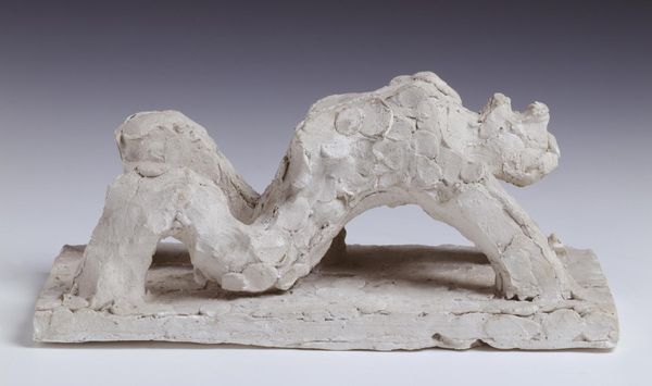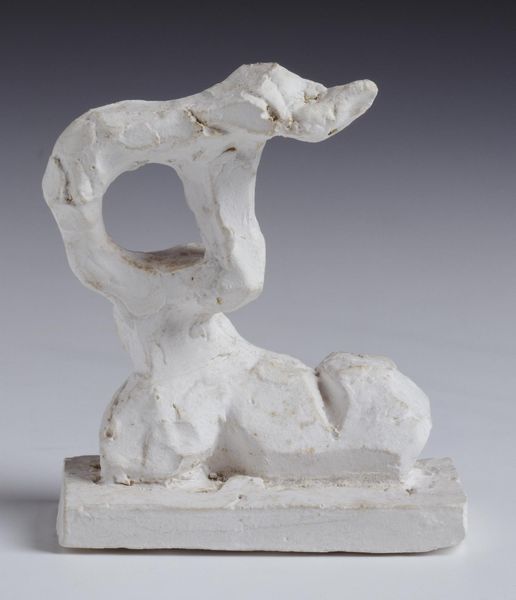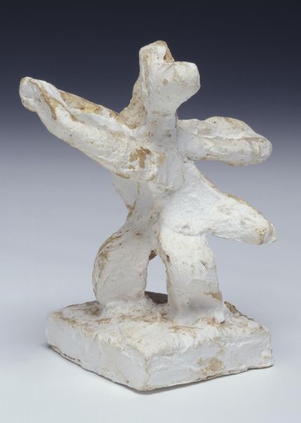 Editor: This is "Jacob and the Angel," a plaster sculpture by Jacques Lipchitz. The forms seem to be intertwined, locked in a struggle. What do you see in the tension between these figures? Curator: The dynamism resides in the interplay of positive and negative space. Notice how the figures’ limbs create openings, voids that are as crucial as the solid forms in conveying the wrestling match. The rough texture of the plaster enhances this feeling of raw energy. Editor: So, the lack of smooth surfaces contributes to the sense of conflict? Curator: Precisely. The sculpture invites us to consider the formal relationships as symbolic. It is through those forms that Lipchitz communicates the essence of the biblical struggle. Editor: I see, it’s a battle articulated in form, not just narrative.