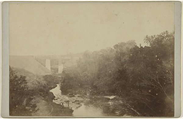Curator: This is an untitled landscape by John Adams Whipple, presenting a view of a mill and stream. Editor: It has a romantic, almost melancholy feel, doesn’t it? The soft focus lends it an ethereal quality. Curator: Indeed. Whipple, who lived from 1822 to 1891, was a pioneer in photography. The composition is intriguing, with the water acting as a reflective plane. Editor: And think of the impact this had at the time! Photography democratized landscape imagery. It moved beyond the idealized vistas of painting. Curator: Yes, the textured shadows, especially in the mill structure, convey a sense of depth. Editor: It makes one consider the role these mills played and the impact they had on our natural landscapes. Curator: A very interesting perspective. Editor: It's a truly captivating work.