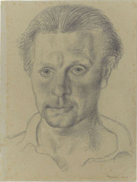 Curator: This drawing, made with pencil and graphite on paper, is titled "Portrait of an Unknown Man". Henk Henriët completed it in 1944. It’s part of the Rijksmuseum’s collection. Editor: My first impression is one of quiet intensity. There’s a vulnerability in the gaze that’s almost unsettling, balanced by the crisp, controlled strokes of the medium. Curator: The realism feels significant. Given the date, 1944, you wonder if this careful depiction aims to preserve something precious, perhaps the likeness of someone caught in turbulent times. Editor: The crosshatching around the eyes and jaw creates depth, but also a sense of unease. It almost feels like the man's face is emerging from a shadow. I am struck by the balance between light and shadow that suggests so much about what's going on beyond the surface of his face. Curator: Exactly, the shadows seem to hint at something unseen, unspoken. The slightly averted gaze, though direct, conveys a feeling of melancholy, as if bearing witness to events best left unsaid. Perhaps a kind of visual testament, a psychological space holding unnamed anxiety? Editor: The lines are more defined on one side of his face than the other; and the overall effect definitely evokes an uneasy or pensive emotional register. His expression doesn't signal dread exactly, but maybe an anxious expectation? It would be interesting to study Henriet's choices here regarding perspective and shading and how they enhance certain angles. Curator: As you mentioned, the precise lines emphasize his distinct features and this man becomes a symbol. The artist’s mastery of subtle shading and line work breathes life into the unknown subject, transforming him into an emblem of resilience amidst potential adversity. We are left questioning what that might be. Editor: For me, the lack of specific detail invites me to overlay it with my own history and imagine the man is from my own family history. That's what great art should do. Curator: Precisely, its power lies not only in what it reveals but in the myriad of possibilities it evokes. Editor: An emotional resonance distilled through pencil strokes, bridging the past and the present, I would say.