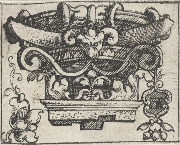 Editor: This drawing, "Fries met een vaas tussen twee putti en bladranken", was made around 1529 by an anonymous artist. It's an ink drawing or print that shows a vase flanked by putti and leafy scrolls. The whole design strikes me as meticulously balanced, but the putti also add an element of lively animation. What elements stand out to you most? Curator: Indeed, the work presents a fascinating study in contrasts. I'm drawn particularly to the artist's use of line. Note the way it defines form, creates texture, and delineates the various planes within the composition. It's a linear style reminiscent of the Northern Renaissance. The very precise lines contribute to a flattened picture plane that's typical of the period. Editor: I see what you mean about the use of line. The artist has a keen sense for decorative flair, too. But the subject also speaks volumes. Why fuse the classical vase motif with putti and foliage? What purpose do those choices have for the viewer? Curator: An intriguing question. What structural relationship exists between these forms? Could it be an allegorical connection to the Renaissance's rediscovery of classical forms with its own embrace of exuberant growth? Consider the composition. The putti and foliage actively frame the vase, directing our gaze and emphasizing its significance as the piece's focal point. Does the line work to create spatial depth or flatten it even further? Editor: So you’re suggesting that the way the lines are rendered contributes to the symbolism embedded in this historical artwork? It gives me a different perspective to think about. Curator: Precisely. Analyzing these structural components allows us to delve deeper into the work's meaning and appreciate the skill with which the artist integrates disparate elements into a cohesive whole. This framework reveals layers of symbolism and artistic intent that may have otherwise gone unnoticed.