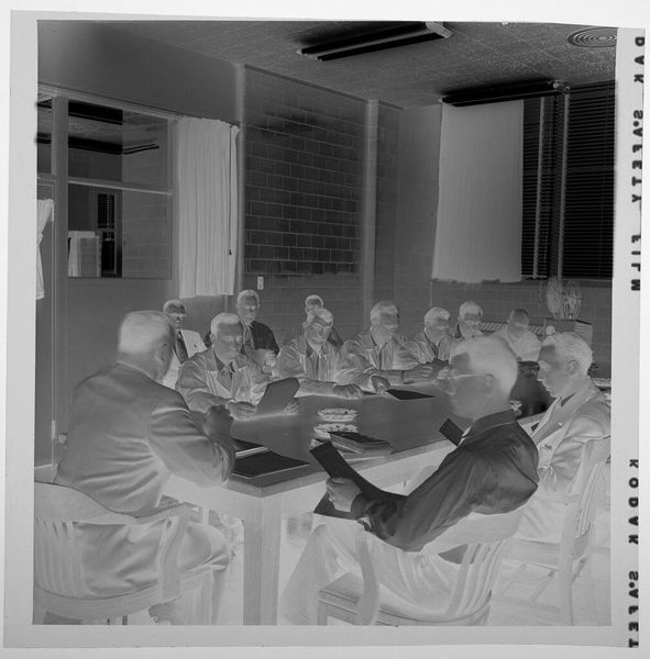 Editor: This undated, untitled photograph by Jack Gould at the Harvard Art Museums depicts workers filing taxes. The composition seems very focused on the grid-like arrangement of the card cabinets. What structural elements stand out to you? Curator: Note how Gould contrasts the ordered background with the workers’ postures. Each figure's subtle variation breaks the monotony. The photograph's texture and tonal range enhance the sense of depth and space. Do you perceive a tension between the individual and the collective? Editor: Yes, I see that tension now. The individual actions contribute to this large, bureaucratic system. I hadn't noticed how the composition reinforces that. Curator: Precisely. The photograph's form mirrors the subject matter, highlighting the systemic nature of the task. The interplay between these elements provides a deeper reading. Editor: This makes me appreciate how the visual arrangement echoes the themes within the image. Thank you.