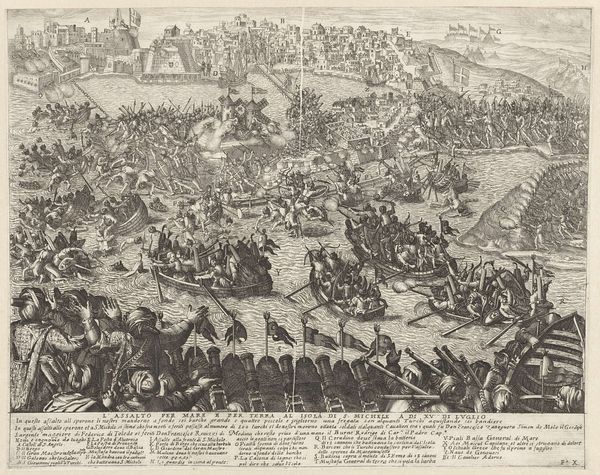 Daniel de Lafeuille’s “Overwinningen van de Geallieerden,” created in 1691, captures a moment during the Nine Years' War, a conflict shaped by shifting alliances and dynastic ambitions in late 17th-century Europe. This detailed engraving reflects the period’s glorification of military might and the complex politics of the era. Battles were as much about territorial expansion as they were about establishing religious and political dominance. Lafeuille’s choice to depict the ‘Allied’ victories underscores a specific narrative—a deliberate construction of heroism and triumph, even as the human cost of war remained a stark reality for many. Consider how the detailed rendering of battle scenes—the clash of soldiers, the fallen horses—contrasts with the more abstract maps at the top, symbolizing the territories at stake. What does it mean to reduce lives and landscapes to mere strategic assets? This work invites us to reflect on the stories we tell about war, and who gets to tell them.